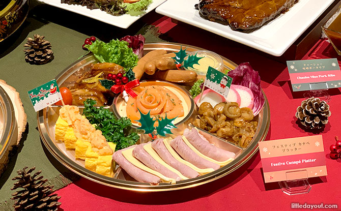 One of the new items available is the Festive Canape Platter ($43.90). It has seven different types of food presented in bite sized portions. I particularly liked the teriyaki scallop and yuzu chicken. The scallop was juicy and chewy, while the chicken was tender, and both meats are served with generous portions of sauce coated on top.