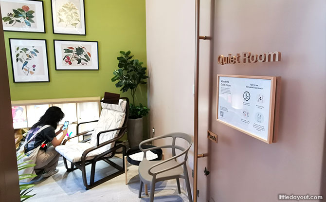 For a respite from the activities, seniors can use the Quiet Room meant to help them decompress and regulate themselves in a relaxing environment. There are napping chairs, foot-rests, cushions and even sensory tools for self-regulation.