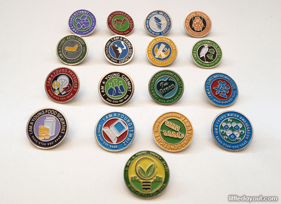 The iconic collectible Young Scientist badges (from top left to right) launched in 1982 – Young Botanist, Young Zoologist, Young Meteorologist, Young Entomologist; in 1983 – Young Ecologist; from 1984 to 1986 – Young Geologist, Young Astronomer, Young Ornithologist, Young Physicist, Young Chemist, Young Environmentalist, Young Mathematician; in 2003 – Young Food Scientist, Young IT Whiz, Young Geneticist; in 2005 – Young Water Ambassador; in 2012 – Young Energy Saver.