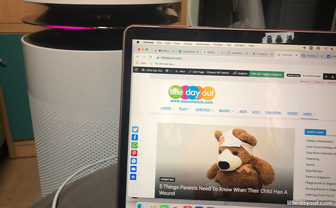 The other mode that we found ourselves using often was the duel mode, which activated the bottom filter that purifies the air closest to the ground. This mode is useful for households with babies, toddlers and pets as they usually play and spend time closer to the ground. I also found this mode to be useful for doing home workouts or even just when sitting on the floor to finish work.