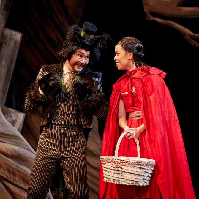 Ric Liu stood out with his dramatic turn as the Wolf, switching effortlessly from a sweet-talking charmer to a ferocious killer to achieve his “dining” goals. With his solid vocals and wicked sense of comic timing, Ric endeared himself to the audience and elicited much laughter from everyone including the kids.