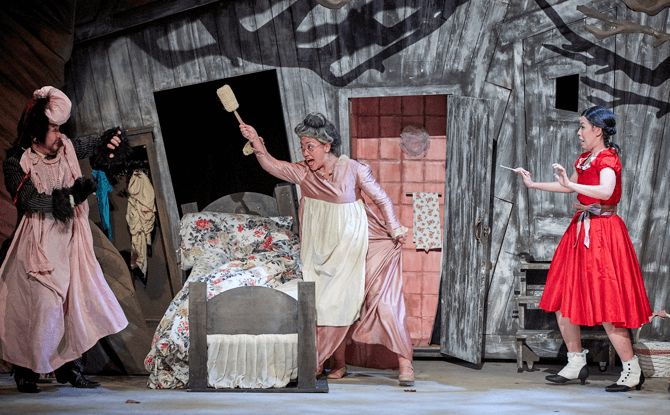 I also liked the set design, which was beautifully crafted, with clever hidden mechanisms that had me going “how did they do that?” Creative lighting also had a part to play in conjuring up this “magic”. I’m still trying to figure out how Grandma “disappeared” into the Wolf’s tummy!