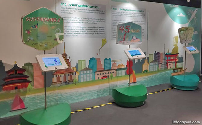 I really liked how the Rice Is Life exhibition at Science Centre Singapore was curated. The information was presented clearly with many hands-on elements, touchscreens to get the children to respond to various questions and even a video playing from a rice cooker. While rice is something we all know and consume, the amount of information about rice was very rich.