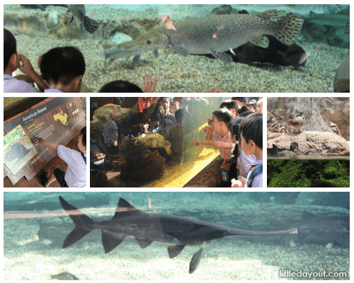 Going past a series of educational displays about pandas, visitors get to meet Jia Jia. She can often be seen pacing up and down the slopes of her hilly habitat. If she is feeling shy for the day and decides to retreat to her cave, River Safari has installed a display screen near the exit that allows you to watch her at rest.