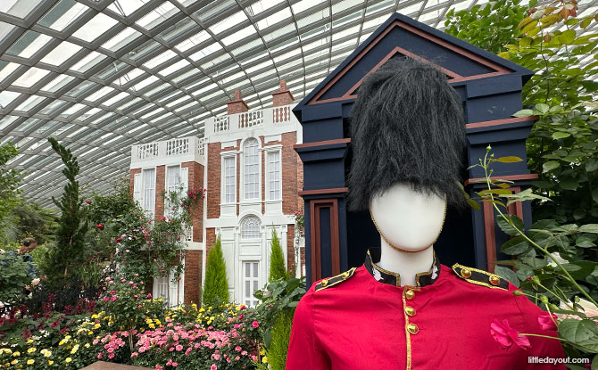 At the entrance to the Flower Dome, you can sit and pose in front of a recreation of a Georgian mansion with British guards, decked out in their bright red uniforms, on either side.