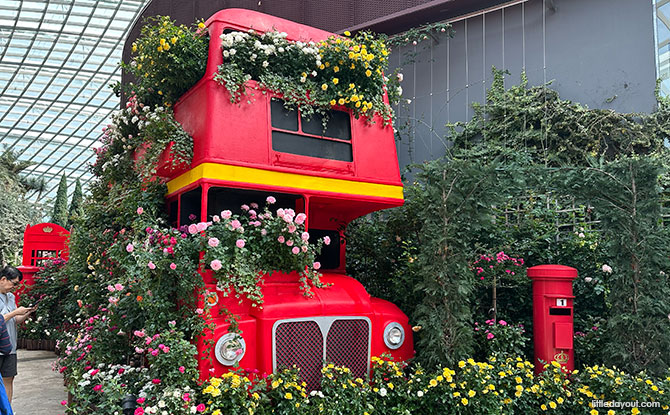On the way out of the Flower Dome, take a picture with other British icons such as the London bus, a red letter box and red phone booth.
