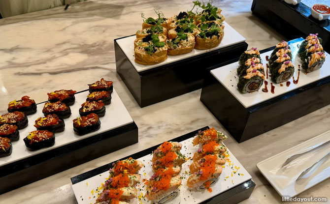 Prepare to be spoilt for choice, with 15 premium sashimi varieties available to choose from that have been air-flown to ensure its quality and freshness. This includes classic selections like Otoro, Sea Urchin, Salmon Belly, Ikura Roe and Hokkigai Hotate. There are also classic sushi & maki options which were incredibly delicious, including the Aburi Sushi, Soft-shell crab maki, Au-Nori ko, Lobster Inari and Idako sushi.