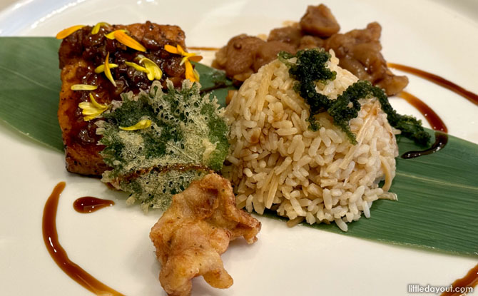 The mains are also not one to be missed. The Sake no Shoyu Butter was one of my favourites, with Salmon grilled to perfection and glazed with a delicious sauce that is infused with butter and soy, making it sweet and savoury. The Takikomi Gohan is a traditional dish that has fragrant mixed rice cooked with Japanese chestnuts and Shimeiji mushrooms, making it a wonderful companion to the salmon with flavours packed in every bite.