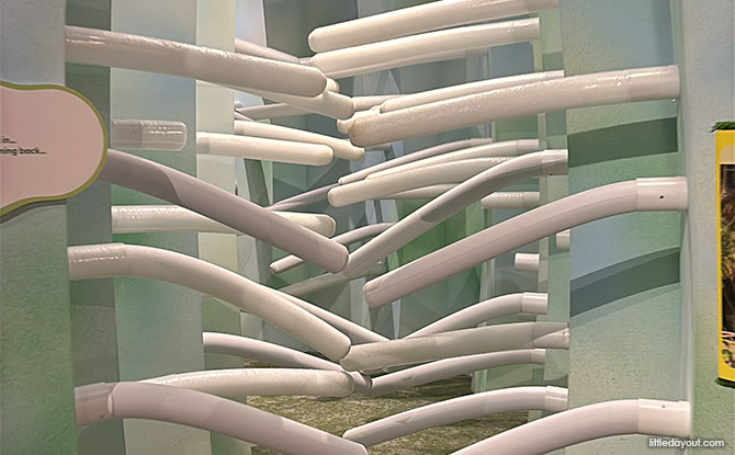 Finally, when it is time to leave, make your way through the white pool noodles that simulate the Corkscrew Plant’s “roots”. The plant’s “roots” are actually leaves and they form at one-way traps that is used to lure and force microscopic prey towards its “stomach” to be digested.