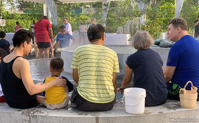 Do also remember to wear a hat or bring an umbrella as the pool area is not shaded. It can get scorching hot in the daytime, adding to the heat that you would probably feel while soaking your feet.