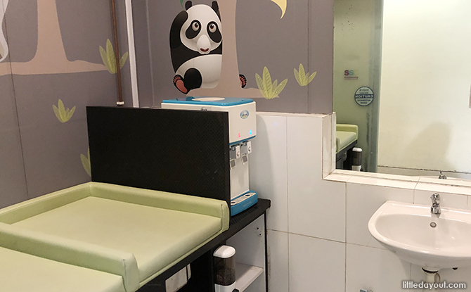 The Sembawang Shopping Centre nursing room at Level 3 is minimally furnished with two padded diaper changing stations, a hot and cold water dispenser and a sink. The room is also lockable, ensuring that parents can attend to their children in privacy.