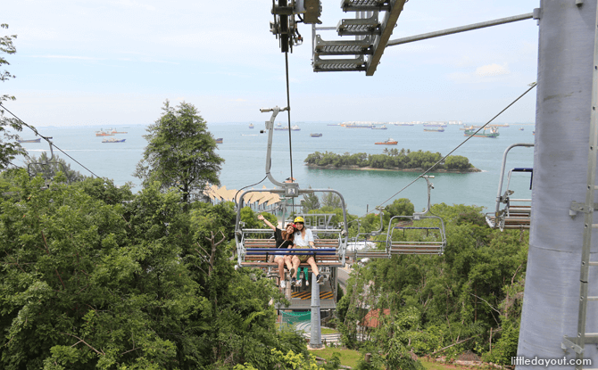 The Sentosa skyride is a scenic adventure on a four-seater chairlift that gives riders an aerial view of the surrounding area.