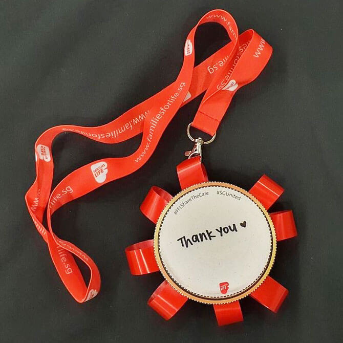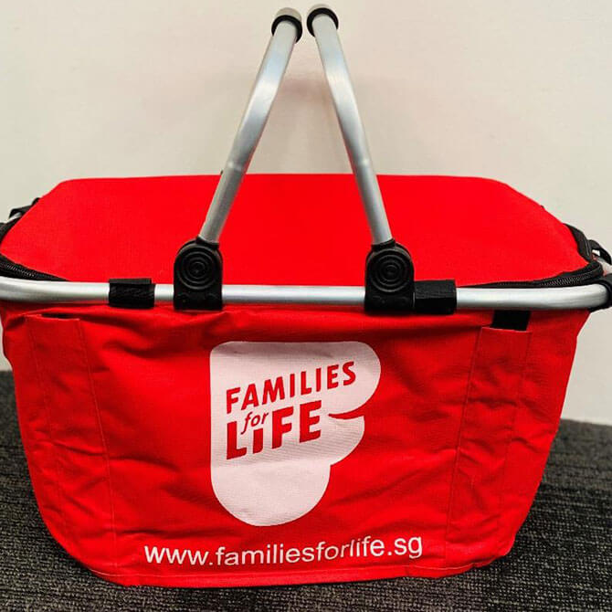 Inside the basket is a DIY kit to make a simple Families for Life Share-the-Care red ribbon. Families can use this to show their appreciation to everyday unsung heroes in the community who keep the community clean and safe, such as cleaners and bus drivers.