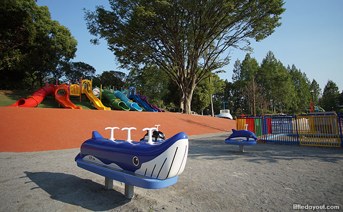 Echoing the theme of aquatic and marine life introduced by the aquarium, the Shinagawa Kumin Park’s children’s playground offers plenty of fun.