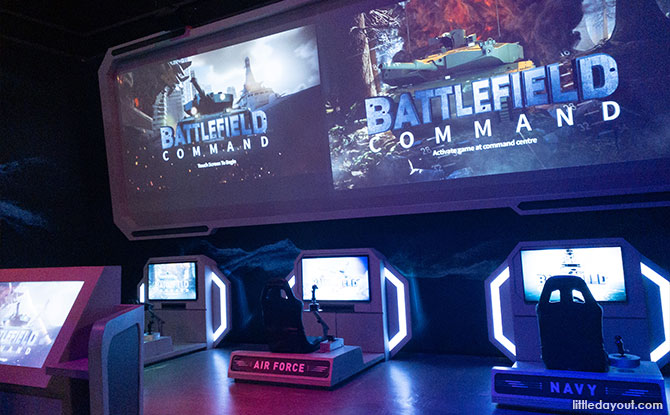 At Battlefield Command, visitors can imagine taking charge of an attack helicopter, frigate or tank, or commanding the overall action.
