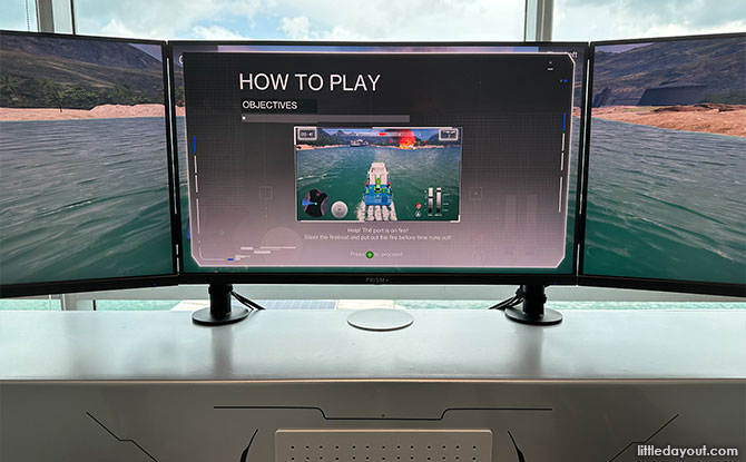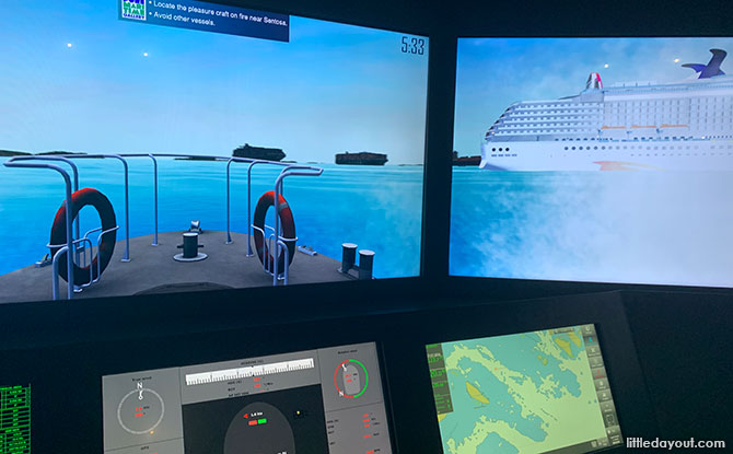 There are different missions available on the two ship handling simulator. These face out towards the waters off Marina South Pier and are a fun way to experience the sea without feeling seasick.
