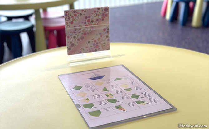There are also instructions for kids to do origami at the kid-sized activity tables.