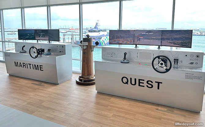 One of the highlights at the Singapore Maritime Gallery that any visitor must try is the Maritime Quest simulator. It is a chance to sail a ship, without a boating license!