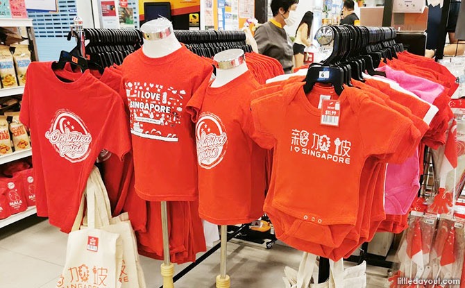 Fairprice supermarkets and other selected supermarkets retail a good range of Singapore National Day themed stickers, flags, buntings, cloth bags, clappers and even child-sized t-shirts.