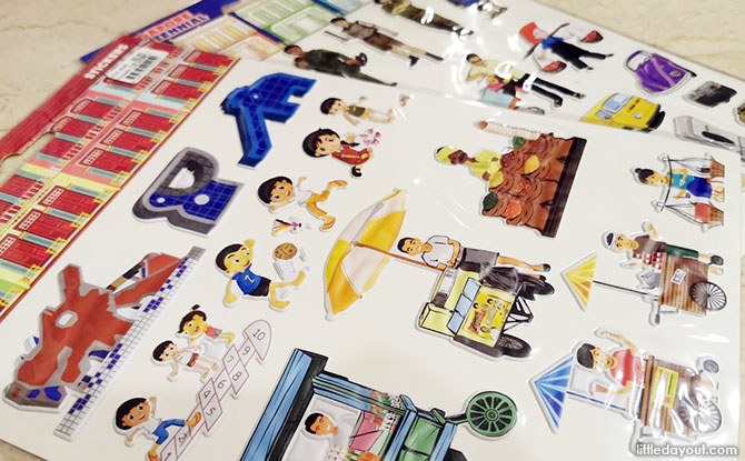 We love the range of stickers retailed too. There are themed ones such as memorable playgrounds, military personnel and various people significant in our history. However, these stickers might require some hunting as they may not be easily available at every supermarket. We reckon these stickers are great to complement a huge backdrop drawn by parent and child to learn more about Singapore’s past and present.
