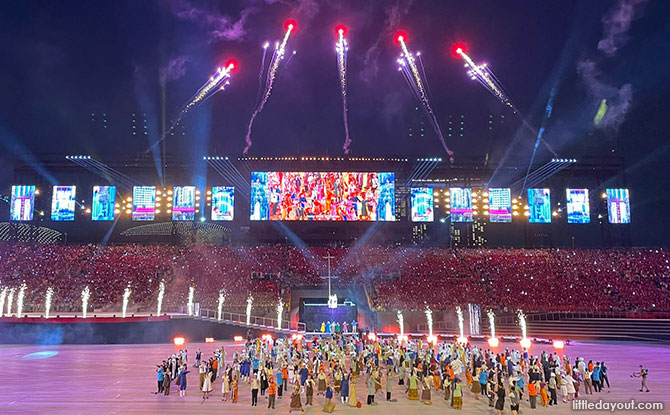 Act One celebrates the vibrant tapestry of Singapore’s diverse society through music, dance, colourful costumes and dazzling fireworks.