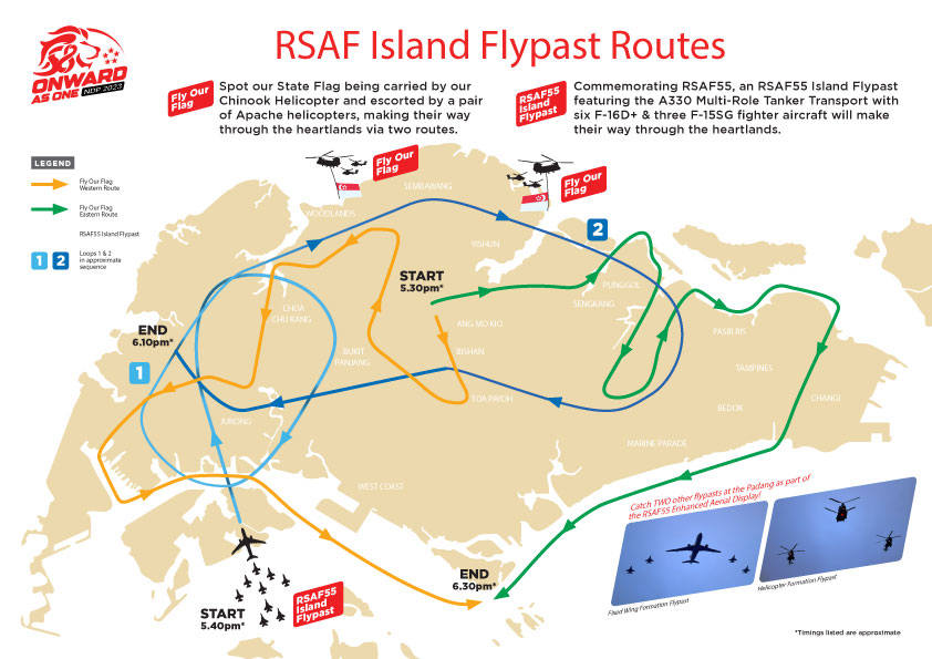 For your easy reference, we have attached a map above, but do get the details on this separate story on the islandwide flypast and the Fly Our Flag segments.