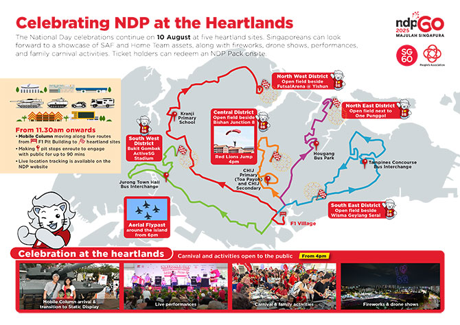 On 10 August, experiencing the Mobile Column as it travels through their neighbourhoods, bringing the spirit of National Day closer to home. Watch as vehicles from the Singapore Armed Forces and Home Team travel along five different heartland routes. Find out more details about where to view the Mobile Column this National Day weekend.