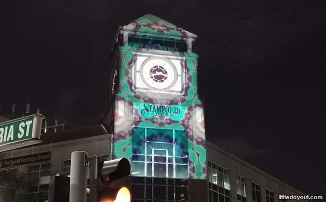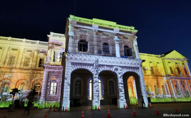 The facade of CHIJMES highlights four enchanting Island Night stories by local female artists told through mesmerising light, colour, and space.