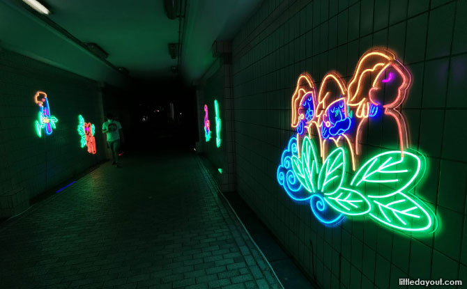 If you continue to chase the light, check out Maegzter’s art at Bugis+ mall in Waves of Time: Splash On Our Skyline. It evokes the sea once heard in the precinct and the lights of yesteryear.