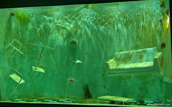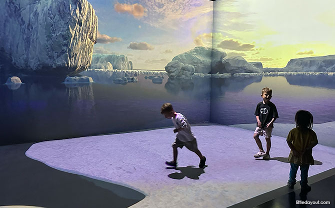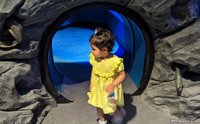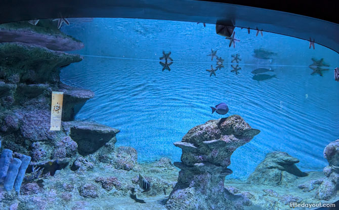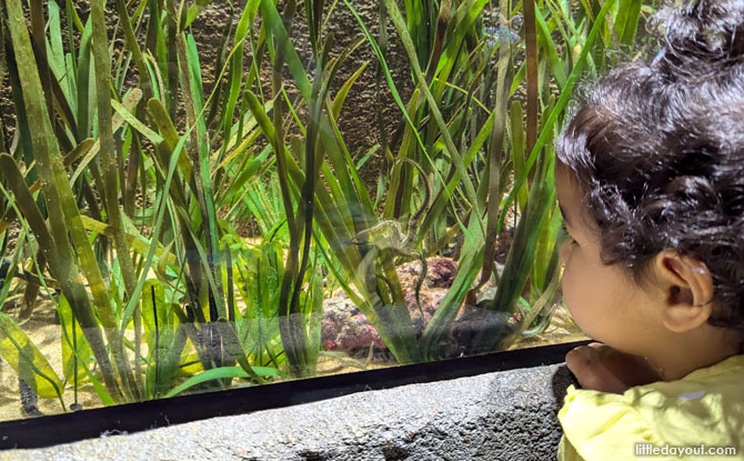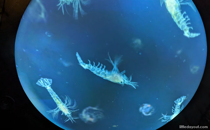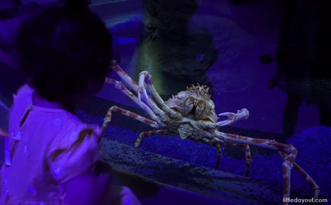 Encounter local species like the Archerfish and Barred Mudskipper in live habitats, and watch other coastal animals come to life through projection mapping, scuttling across rockwork in a mesmerising display of movement and light. It definitely looks so lifelike that my toddler got scared by the “crabs”!