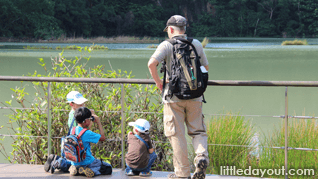 Through one of the few telescopes that NParks had brought along, we stopped along the way for some close-ups. With their keen eyes, the kids had fun describing the many colours on the different parts of the birds.