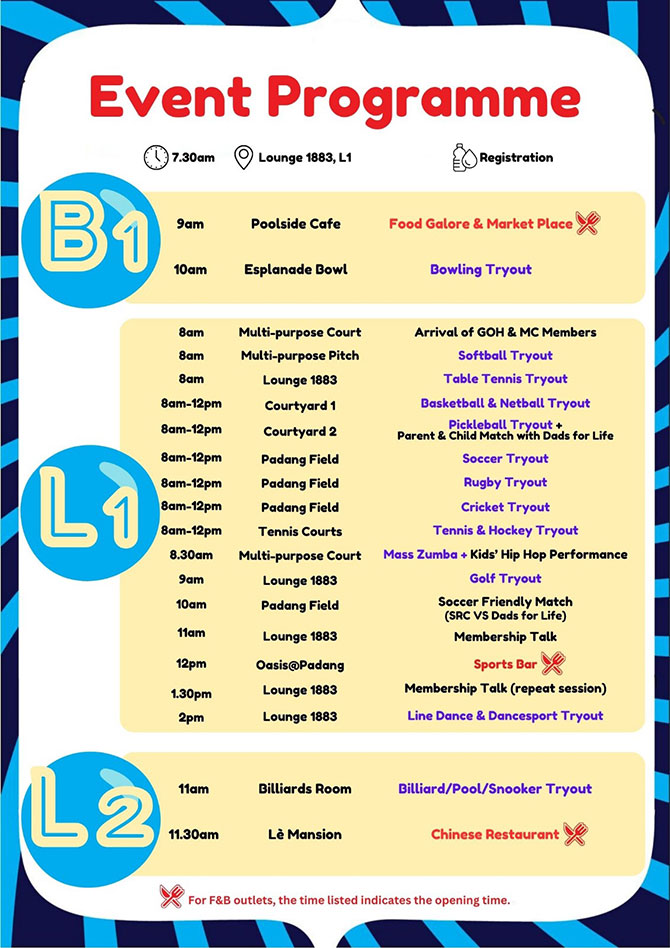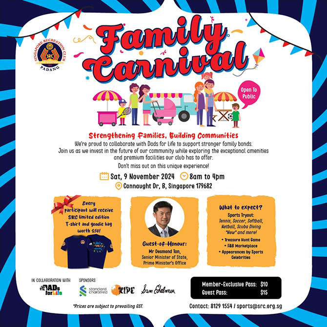 As a cherry on top, your admission fee of just $15 includes a goodie bag worth $50! It’s an irresistible offer for a day of family fun, bonding, and a sneak peek into SRC’s prestigious club life.