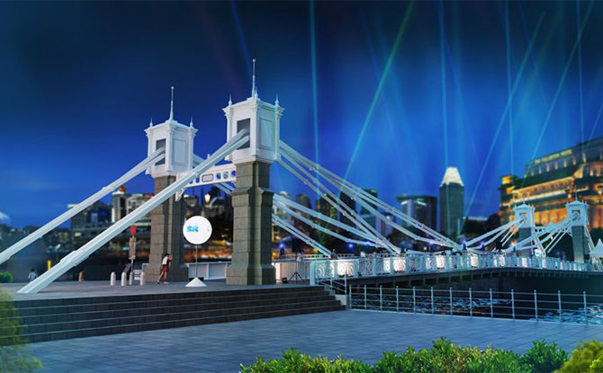 The Cavenagh Bridge is the oldest surviving bridge over the Singapore River. For the Singapore River Festival, it will illuminated based on the theme Urban Pulse.
