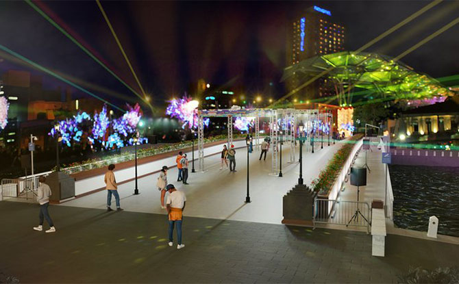 Take a walk along the Singapore River in the evening and enjoy the beauty of the Symphony of Lights light shows at the illuminated bridges from 4 to 13 October 2024.