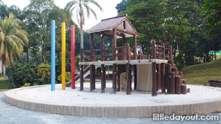 Designed in the form of a kampong house, this playground at Woodlands Town Garden is aptly set amongst coconut trees and next to a lake.