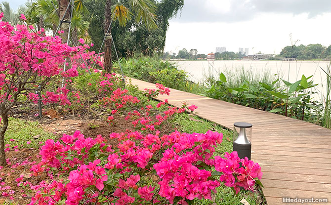 Take a walk along Lakeside Green, an area with a short boardwalk that offers a southwards view of Jurong Lake Gardens. Visitors to Lakeside Green can also admire the pink flowering plants that beautify the area.