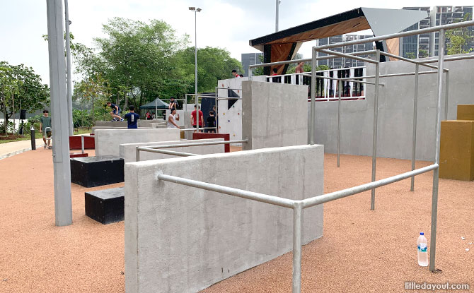Parkour enthusiasts will enjoy the parkour area which has low walls and rails that allow them to practise the sport.