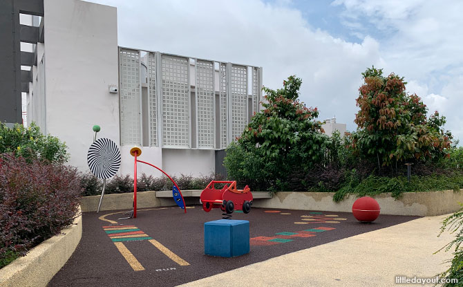 A little tip for parents with young children, the SkyResidence @ Dawson Roof Garden has a children’s playground. This soft-floor playground has a little teeter-totter for kids and a simply climbing frame. Markings on the floor guide children to enjoy different movements around the play area.