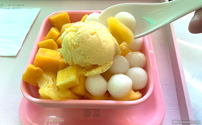 We tried the Mango Ice with Rice Ball and found it to be a cool and refreshing dessert. It comes with tiny rice balls on top of the ice. Some of them were a bit hard though.