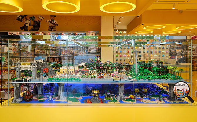 For the centre of the store, local adult fans of LEGO Titans Creation has designed a two-level diorama. Spot familiar landmarks and icons such as the Singapore Cable Car and Sentosa monorail. There are also minifigs enjoying leisure time and recreational activities on the LEGO island.