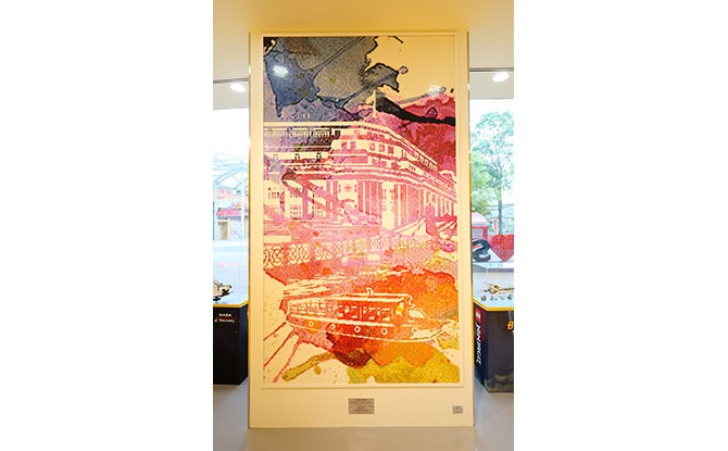 Inside the RWS LEGO store is a mosaic wall titled “Quay Colours”. The 2.3 metre tall and 4 metre wide wall is the largest in Singapore and was designed by Singapore’s LEGO Certified Professional Nicholas Foo. It features a junk boat on the Singapore River, under the Cavanagh Bridge, and with the Fullerton Hotel in the background. It was made out of 103,680 LEGO pieces.