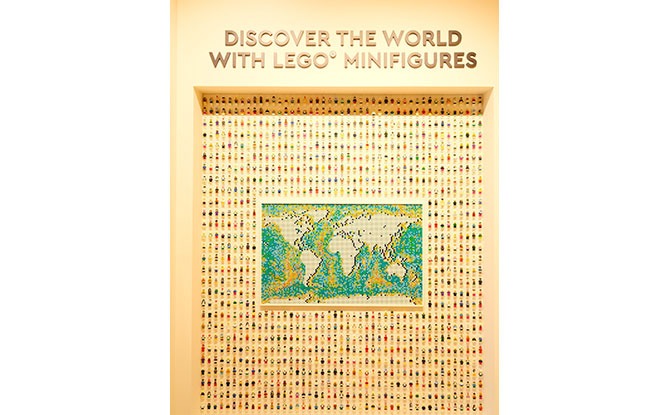 Head over to the Vertical LEGO Play Wall at the store. This has been created with more than 11,000 LEGO pieces and surrounded by 990 minifigs. See if you can spot the 30 pairs of twin minifigs in hidden in the wall.