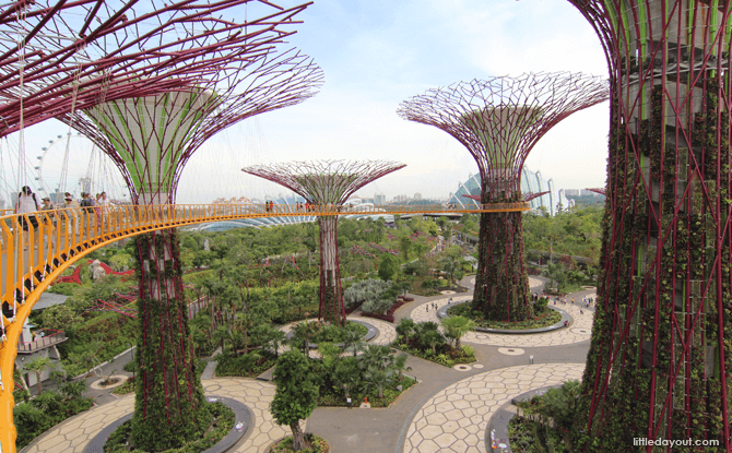 We recommend coming by in the evenings, as it is not so hot and you can catch the twice-nightly Garden Rhapsody light and sound show. Admire the gardens vertically as the 25 to 50-metres tall large canopies come alive at night.