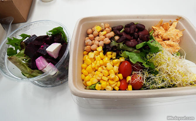 The meal was pretty filling and definitely help us to keep within a 2000 calorie diet since it was a total of 650 calories. The coconut protein balls were not our favourite but perhaps it was just because none of us were inclined towards the taste of coconut very much. The texture was that of a nonya kueh.