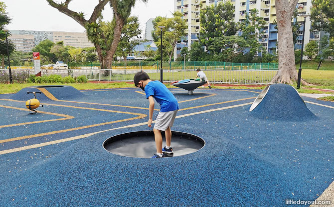 Young ones who need to expend even more energy can head over to one of twos trampolines embedded into the ground and bounce to their heart’s content.