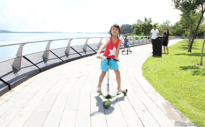 Punggol Settlement is a nice spot for stand-up riding, with nice sea-views to accompany your ride. Mornings and evenings are more suitable for the kids, as Punggol Settlement has hardly any shade from the hot sun in the afternoons.