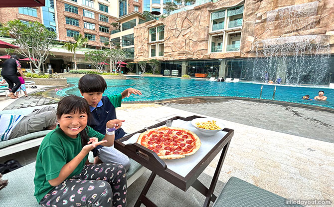 The poolside pizzas are highly recommend and a perfect way to satisfy any hunger pangs worked up while swimming.