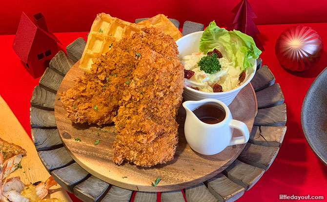 The first dish served up was the Christmas Chicken Waffles ($23.43 single portion, $38.00 sharing 4 to 6 pax). The chicken was tender, juicy, and the golden brown batter provided a great crunch to the dish. Paired with honey, it brings out the best mix of sweet and savoury flavours. I would highly recommend this dish, but prefer if the waffles were thicker in size.