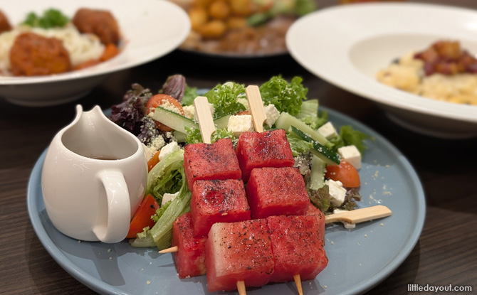 The meal began with the Aburi Watermelon Skewer Salad ($12.90) — a lively plate of mixed greens, cherry tomatoes and feta, anchored by flame-seared watermelon skewers. The light char gave each cube a firmer bite and a hint of smokiness, though going a touch further would have brought out even more sweetness. Finished with parmesan and a yuzu balsamic dressing on the side, it was a fresh, colourful starter that set the tone for what followed.