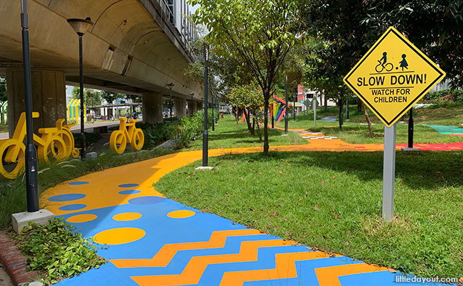 Located just in front of Block 268 Tampines Street 21 is the Tampines Bike Maze. The colourful circuit is designed for kids to be able to pedal around at the little mini track.
